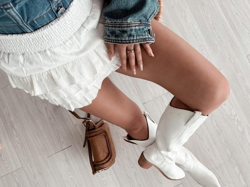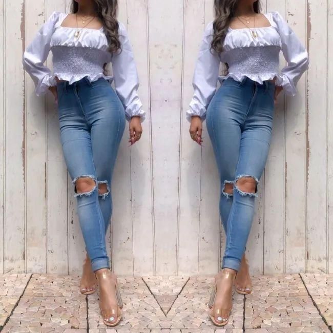 即日発送【 Vibrant M.i.U 】 ニークラッシュハイウエストスキニーデニムパンツ [ライトブルー]