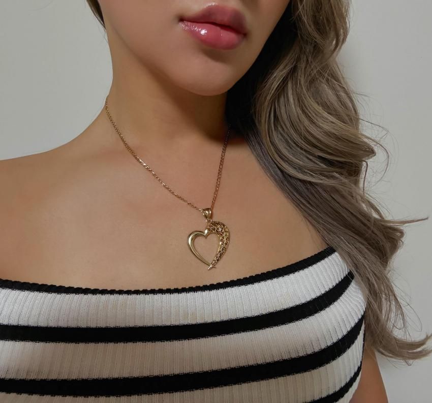 左右のデザインが異なる存在感抜群のハートチャーム。