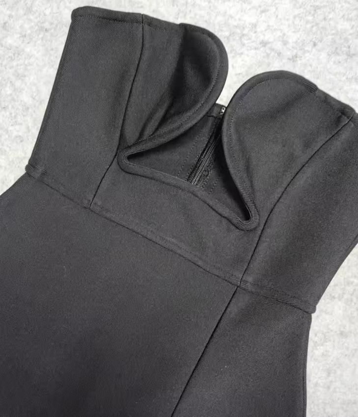 大胆なデザインが魅力のスリットビスチェバンテージドレス!胸元の大きな開きとセクシーなスリットが印象的で、パーティーシーンや特別なイベントで一際輝くこと間違いなしです。バンテージタイプのデザインはボディラインを美しく引き立て、個性的なスタイリングを楽しめます。