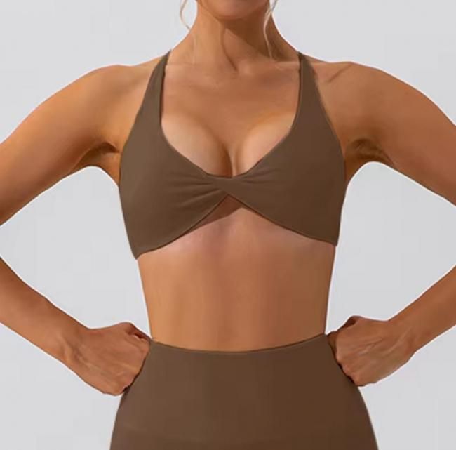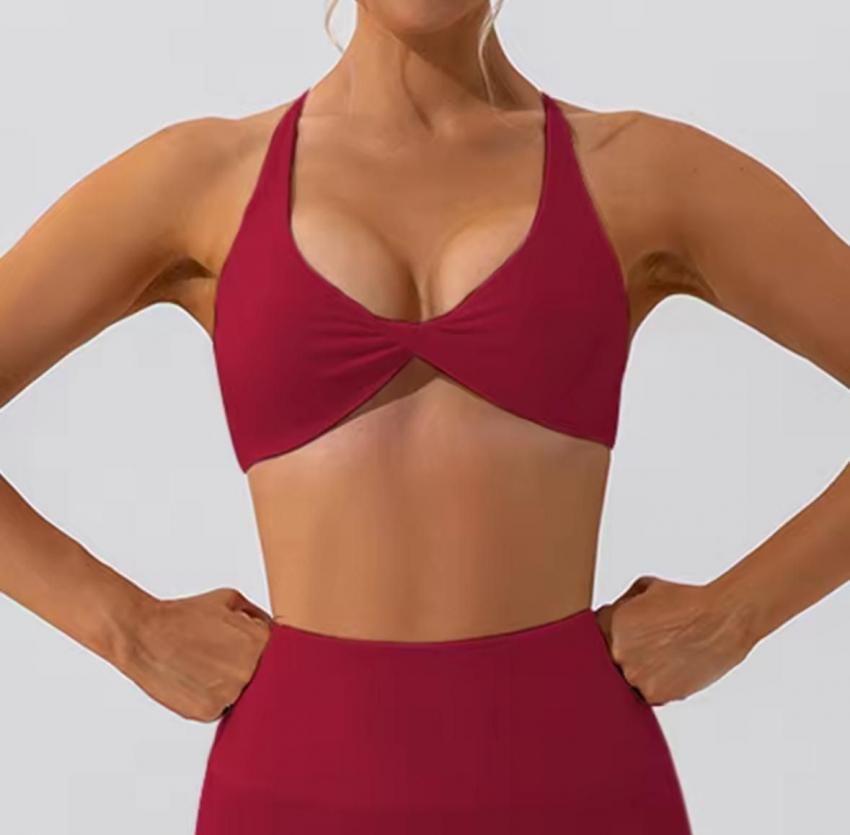 バッククロスブラトップは、背中のクロスデザインがセクシーさを引き立てるトップスです。その前面にもクロスが施され、スポーティーな雰囲気を演出しています。このトップスはジムやヨガなどのフィットネスシーンにピッタリ。