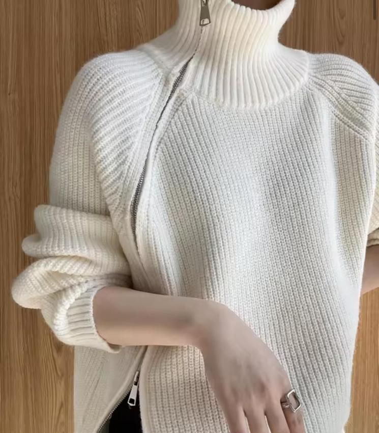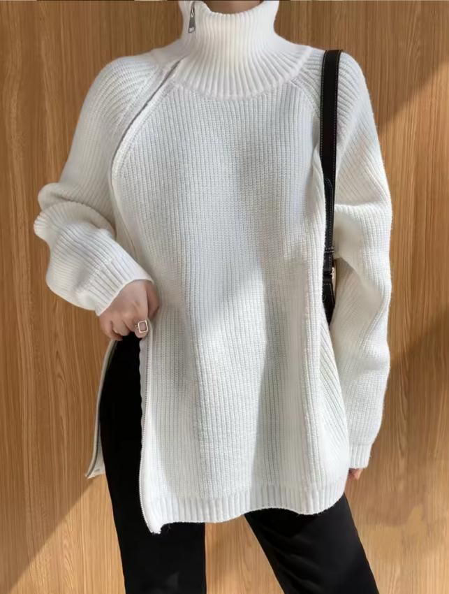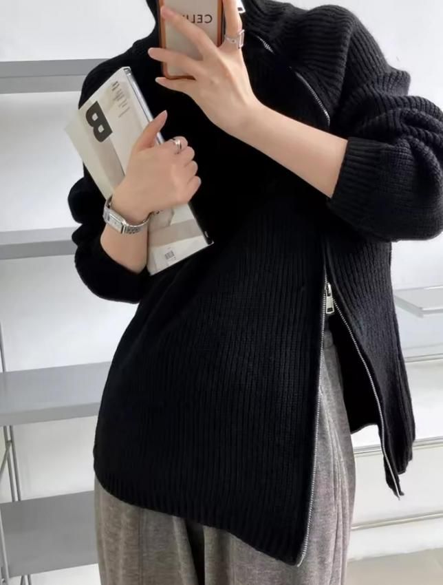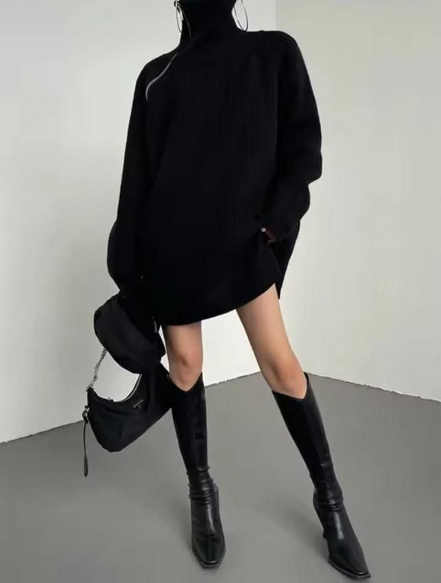 新しいファッションスタイルを楽しむなら、この【予約商品】ダブルジッパータートルネックニットチュニックがおすすめです!ダブルジッパーのデザインが特徴で、気分やシーンによってジッパーの開閉を調節できるのが魅力的です。